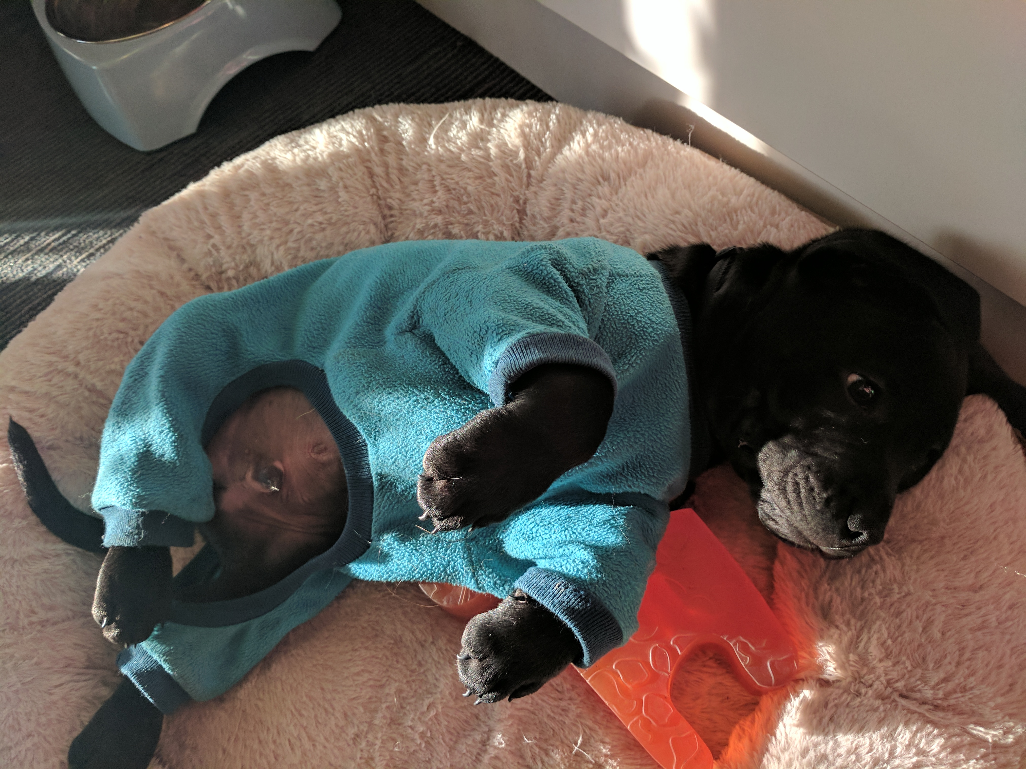 This pet has been adopted and found love with its new family.