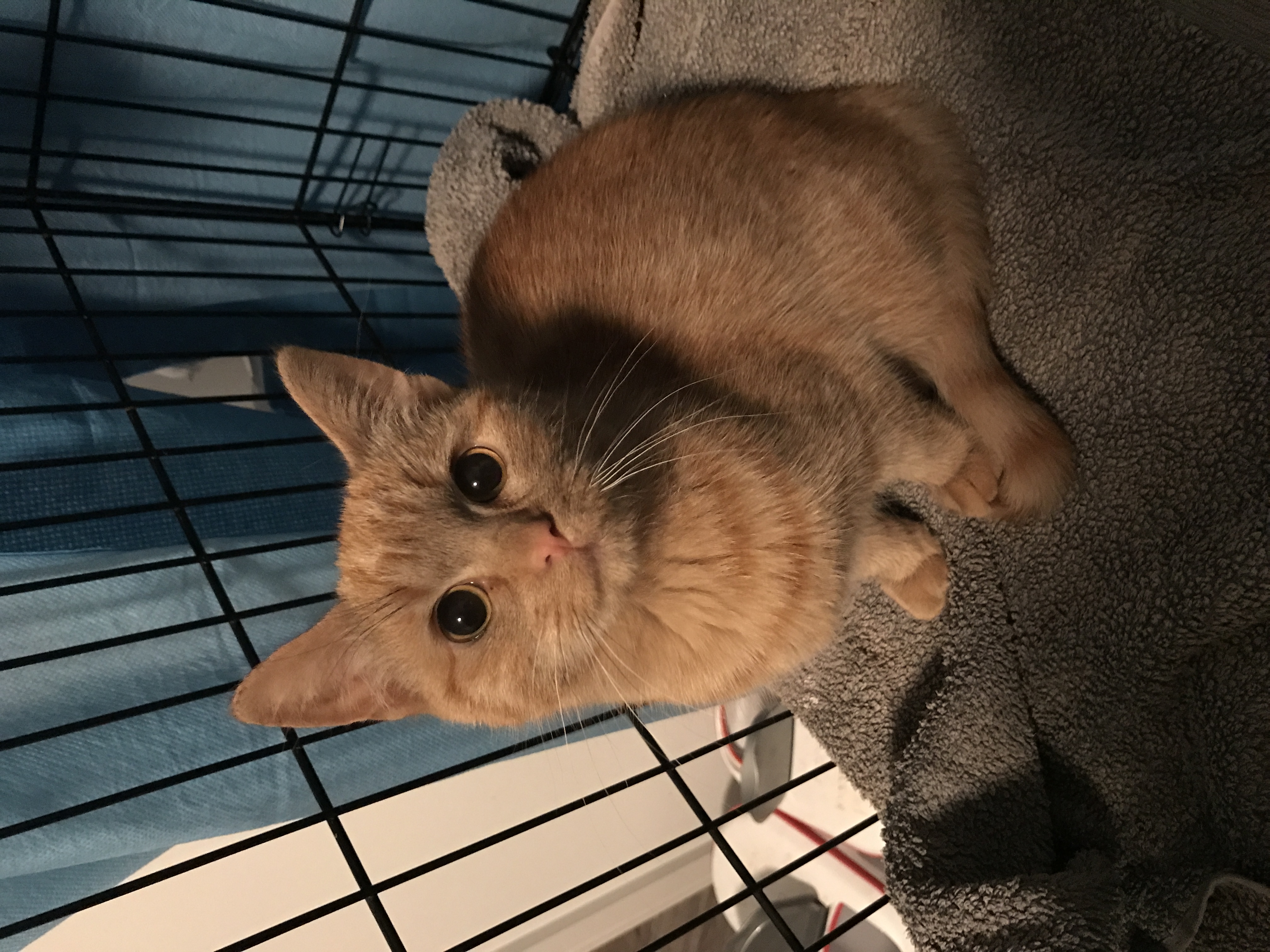 She's very tiny for her age due to being neglected, she's around 6 months old but is the size of an 8 week old kitten!