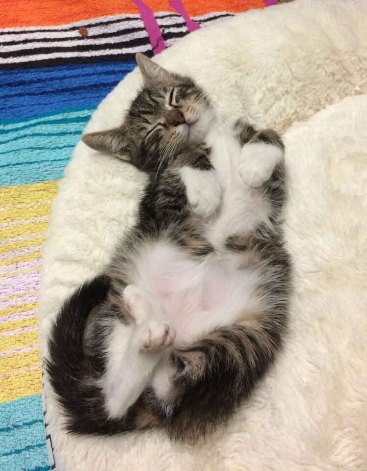 Cosmo is your ultimate kitten, lovable, cuddly, adventurous and a confirmed purring machine! He is made all the more cuter by his white paws in contrast to his tabby features, this little guy is such a sweetheart, and is content either playing with his toys (cardboard boxes are his favourite), climbing and exploring, or snuggled in your lap/arms. DOB 29/05/2017.