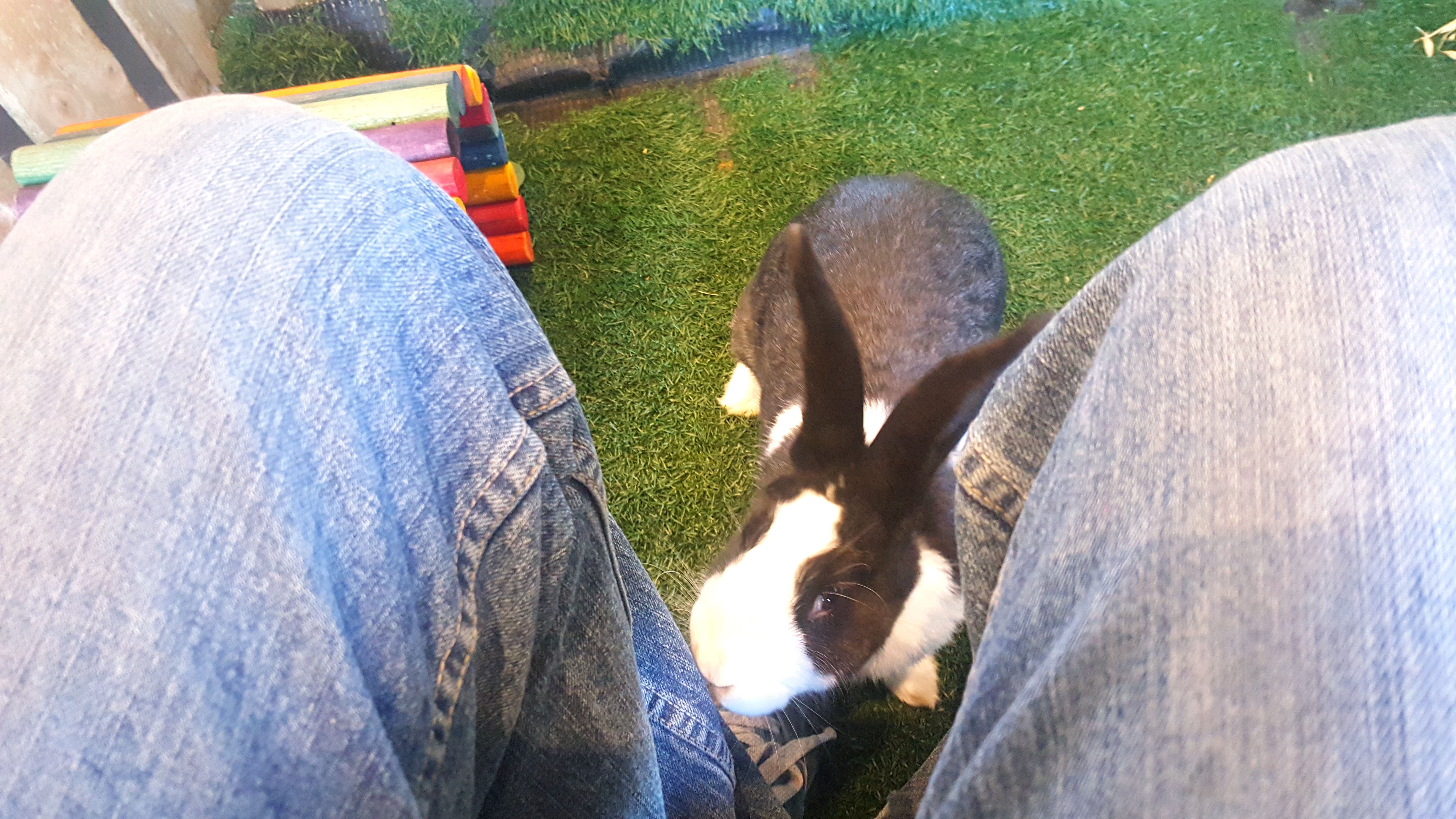 Maggie is at first a bit timmid but soon realises that you are her friend. She will soon be hopping over to check you out and get a pat. Her teeth are perfect and has a healthy appitite. She will grow very large so if you cant provide enough space and food for her dont apply.