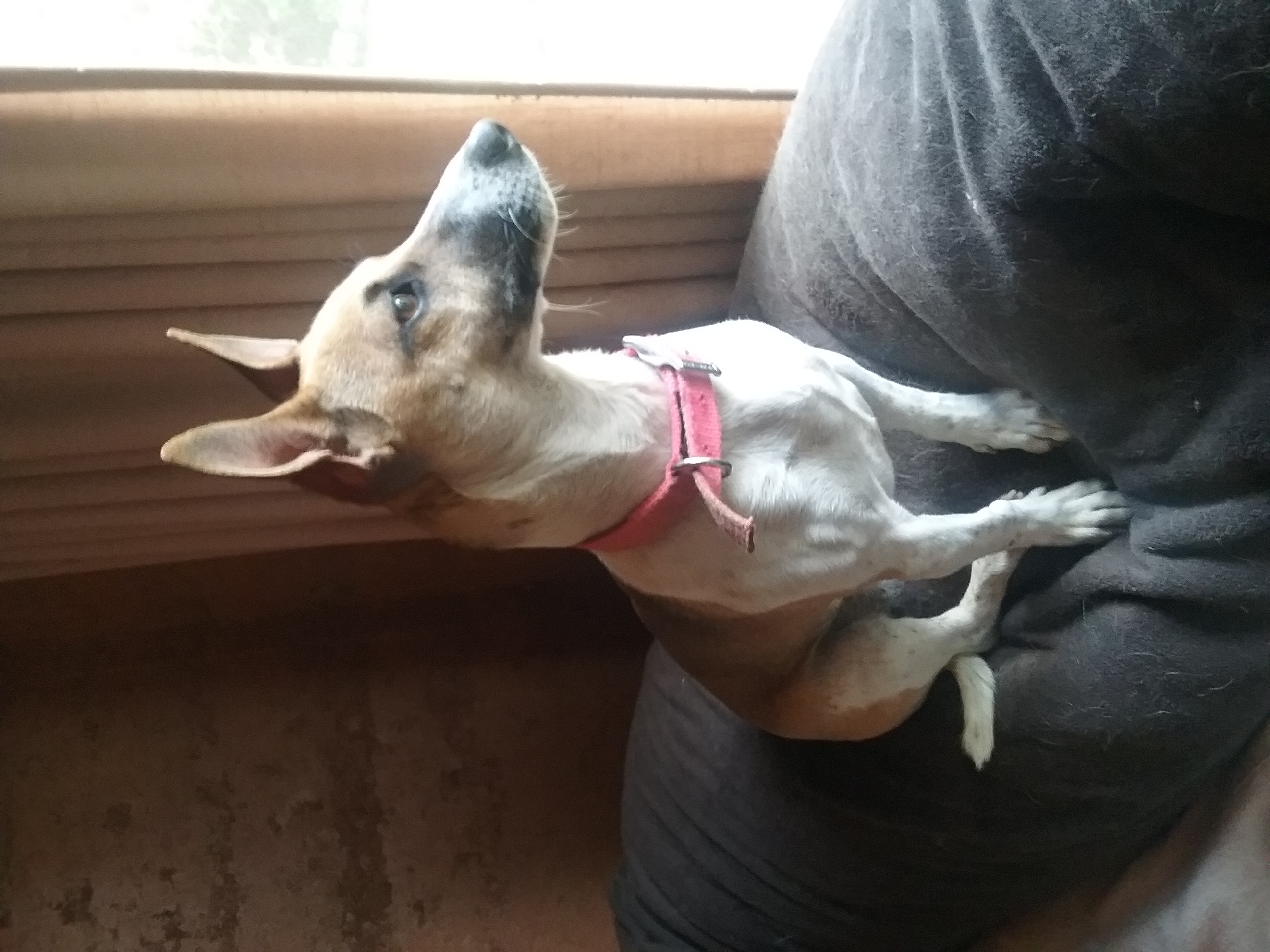 This little lady has spent her life in a backyard I believe most of the time on a chain which is how it was when she was collected she was so cold and sad.