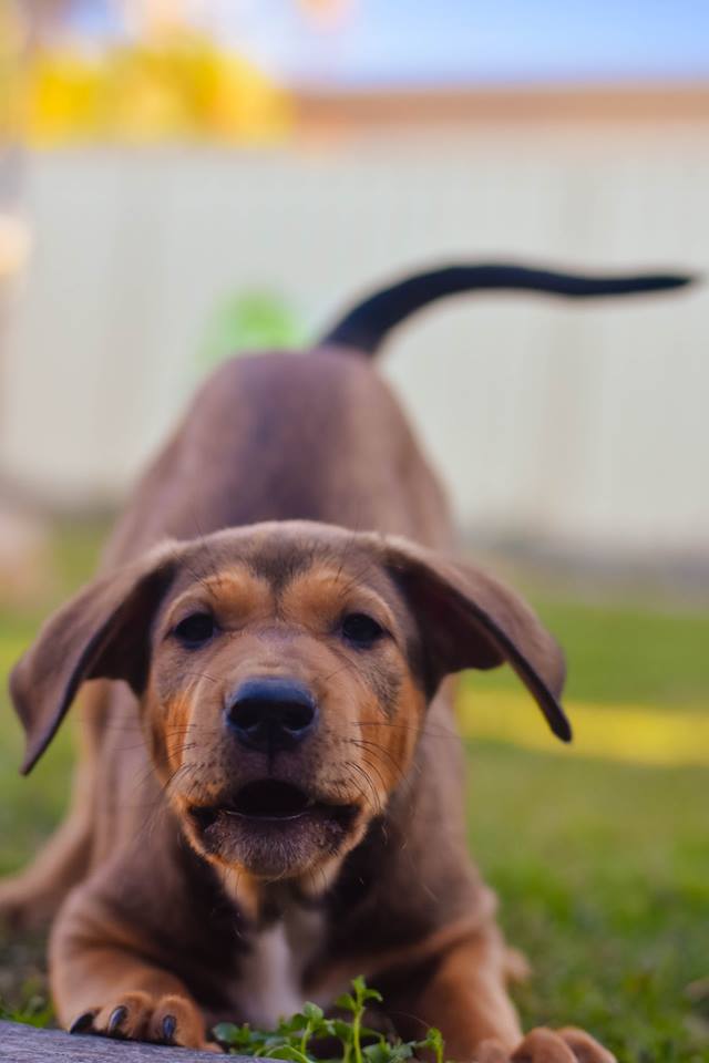 Hi I'm RJ and I love to play! I'm the cheeky monkey of the pack and I love playing with my sister, brothers and toys outside. I like to bring you presents in from outside and can't wait to show you what I've found.