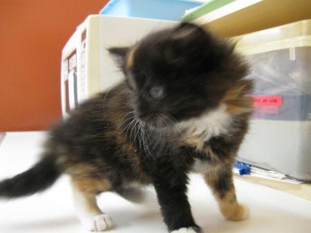 Meet ciara. She is a stunning 8 week old domestic medium to long hair kitten. She was bought into the stud park veterinary hospital with her 2 sisters, clara and clementine and brother, chester. Ciara is a tortoise shell colour with a silky, fluffy coat. She loves to play with her siblings and let her imagination run wild. She loves playing with the staff and cuddling up to them at naptime. She has seen many dogs and we are confident that she will suit a home with dogs, cats or children. Her fee includes the following services,