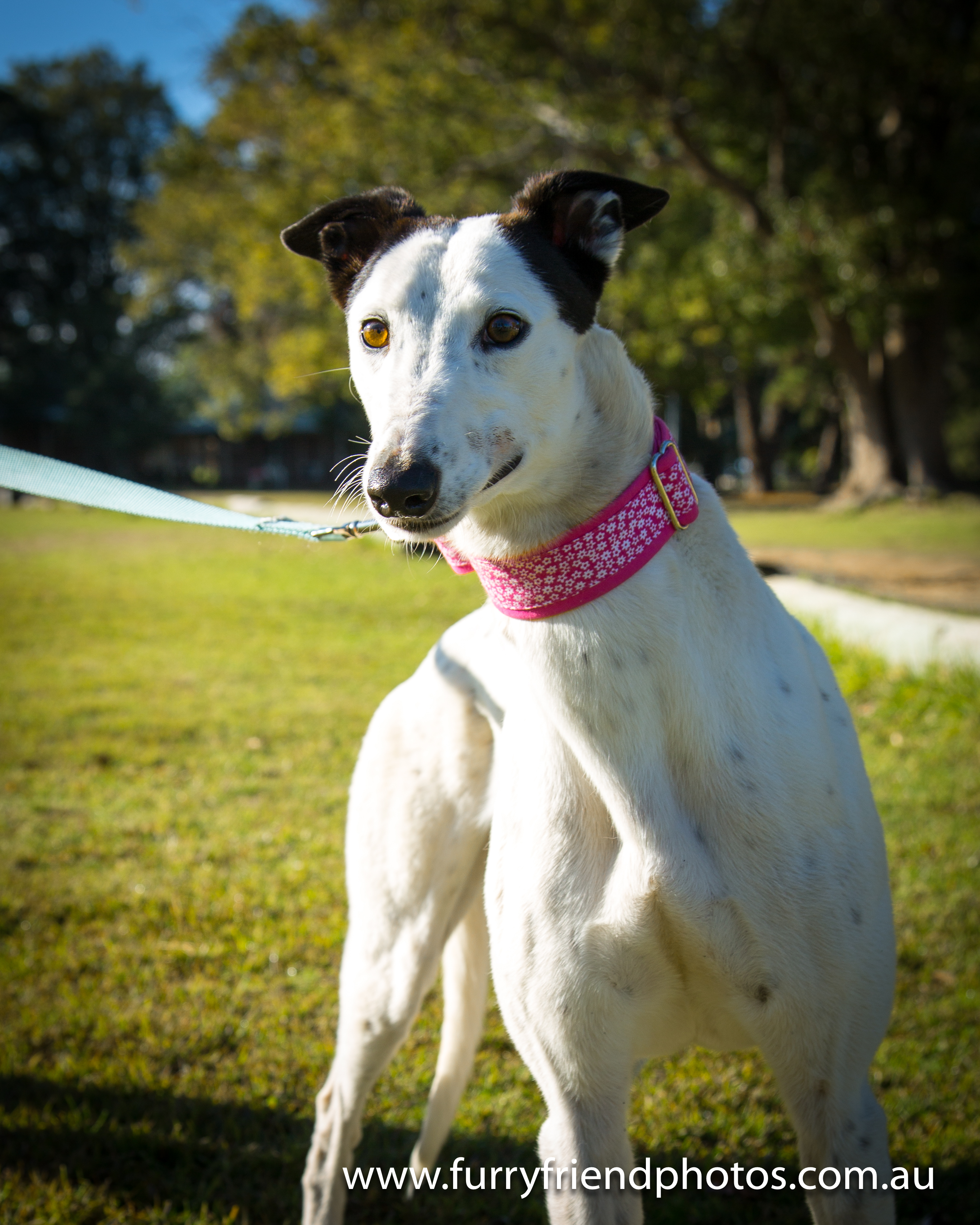 Tiny is house trained, de-sexed, wormed and vaccinated. She walks well on a lead. Whilst not aggressive in any way, due to her exuberance, she is not suitable for homes with small children. Tiny is small dog friendly and loves to play with dogs of all sizes.