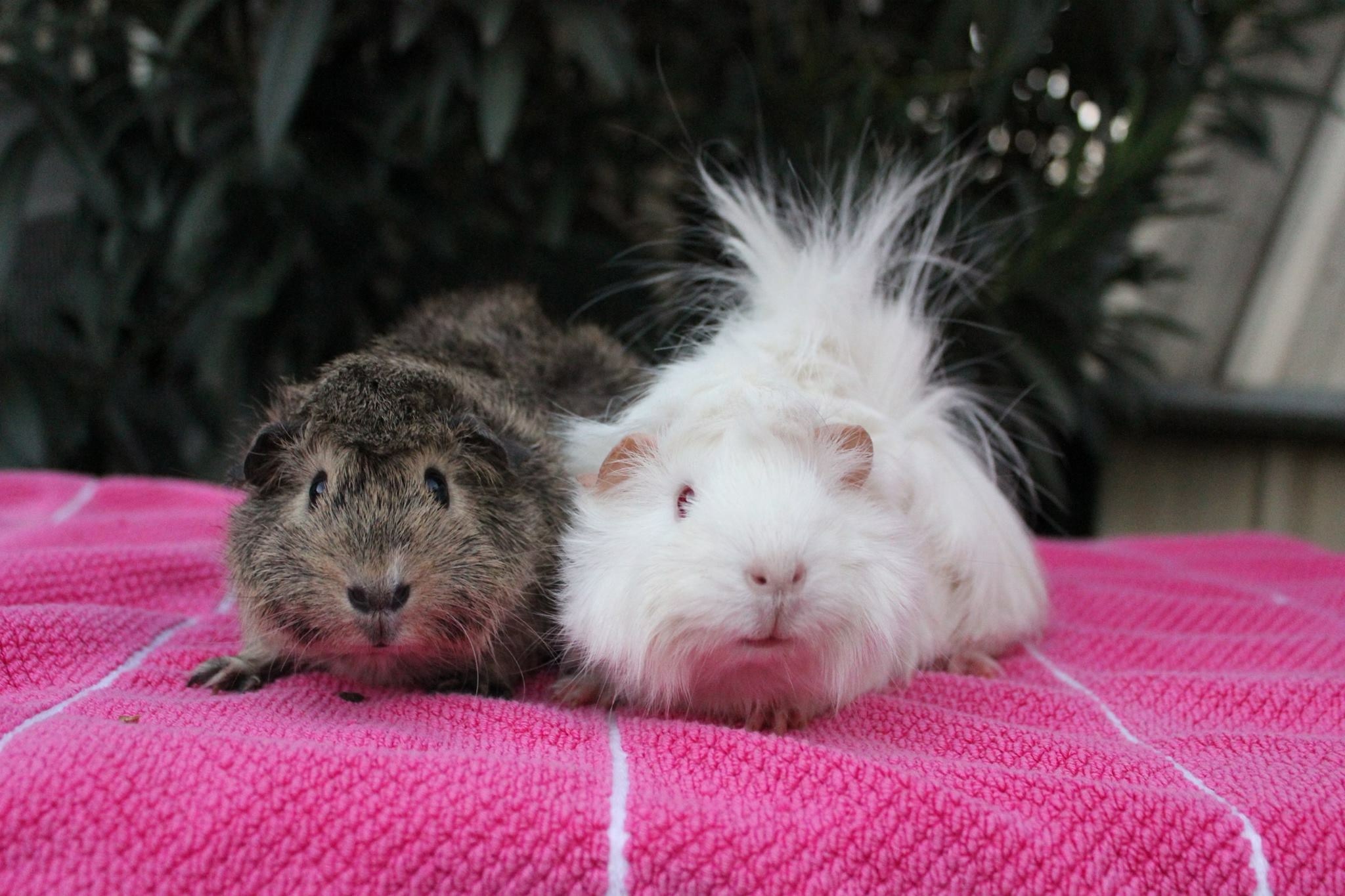 The enjoy their day popcorning around in the outside cage on the grass and at night inside in their nice warm indoor cage. Easy access for cuddles!