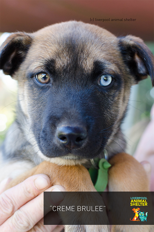 Creme Brulee's personality is still developing but we can confirm he will bring the loves, the face licks and his appetite!
