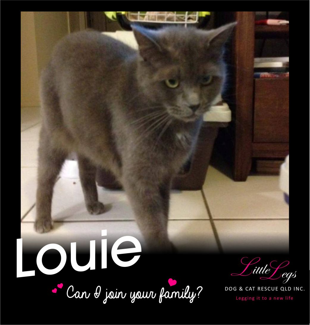 He's a little shy on first meeting, and can take time to settle in to his environment. He needs a patient and kind soul who will love him with all their heart. Louie will repay you with constant head bonks, lap sits and he's not too shy to sleep with or ON you.