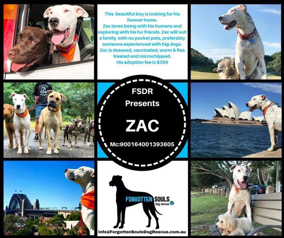 Zac is desexed, vaccinated, worm & flea treated and microchipped.