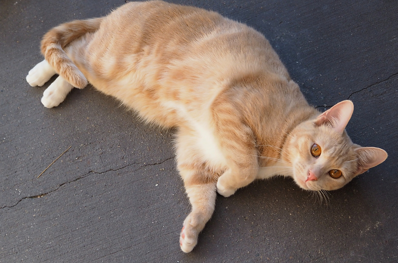 Cleo is an affectionate light ginger champagne and white girl who enjoys being patted, being the centre of attention, and shows her delight with the limelight by giving loving head rubs and rolling onto her back.