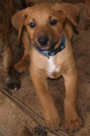 Nathan is one of a litter of eight puppies that were bought to happypaws haven because their owner could no longer afford to feed them or keep them. They are beautiful outgoing playful intellegent well socialised sooky 9 week old puppies. They love to play and love to be cuddled. Their mother was a lab/dane cross and their father a kelpie. They look as if they will grow up to be the size of a lab rather than a dane and as mum has more lab than dane in her this kind of makes sense. They have all been immunised, vaccinated and de-sexed ready for their new homes