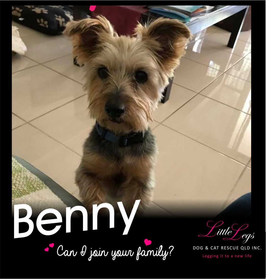 Benny is fully house trained and would suit a home with no small children, secure low visibility fencing (5 ft paling or colorbond with no gaps,( as Benny can jump), with a small/ medium size yard. , (apartment or terrace not suitable.) access inside /outside and a doting owner who would be excellent company for him Benny get along with other small dogs unsure about cats .A household which is relatively quiet or at least provide a quite alone space he could go to. Benny is not suited to off leash areas as is very inquisitive when out walking but is good on the leash and very energetic for his age.