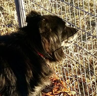 His longish coat is lovely and doesn't seem to tangle much. He is a lovely black with white on his chest and a distinguished grey chin.