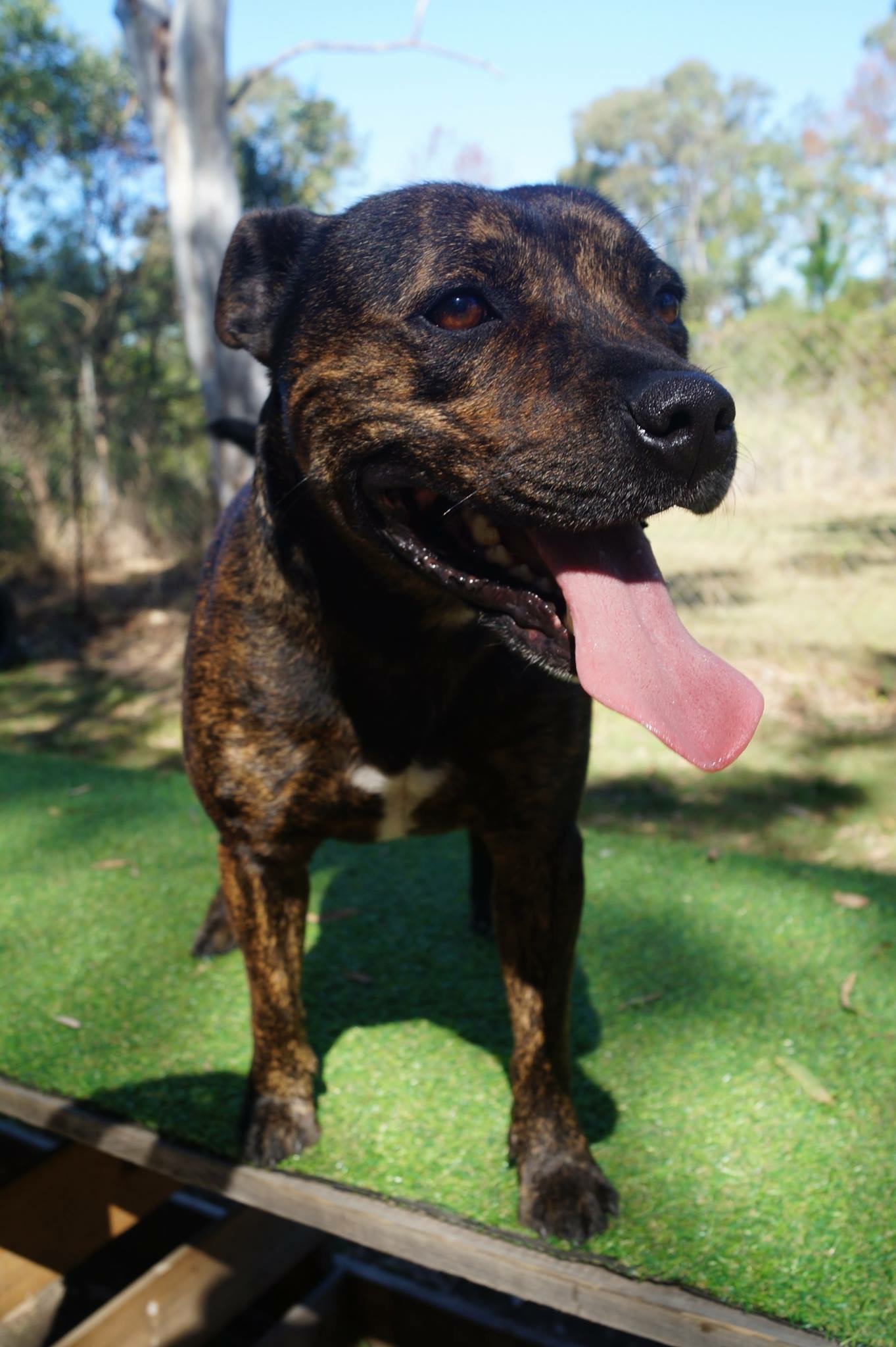 Harley is handsome and well behaved boy who seems to get along well with other dogs through the pens. He is obedient and loves attention, we believe he would make a great family dog. He is a small-medium Staffy.