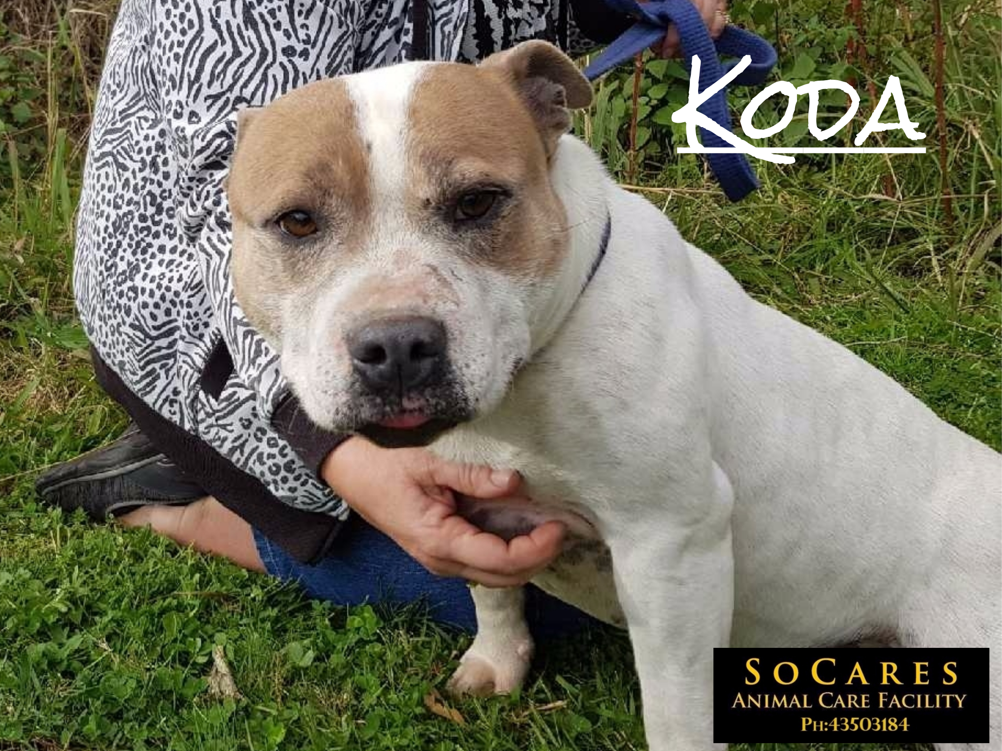 Koda loves his walks and when he wants to go for a walk he will pick up his lead and bring it to you. Koda is a big soft teddy bear, who loves affection. He looks a little rough around the edges but he has a heart of gold. He is very loving and a super affectionate boy. When you pat him, he snuggles right into you. Koda is boy is a pleasure to walk and appears to be dog social as he has previously lived with another female doggie friend.