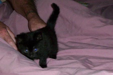 Meet tissue who came into care at just 3wks old when a council ranger rang us for help. This young boy was in a poor condition when he arrived but is now flourishing. His coat is black with under strips with some tips of white at the ends. His name came about because he was so small when he came into care he slept in a lined tissue box, and still does. Tissue won't be ready for adoption until mid december