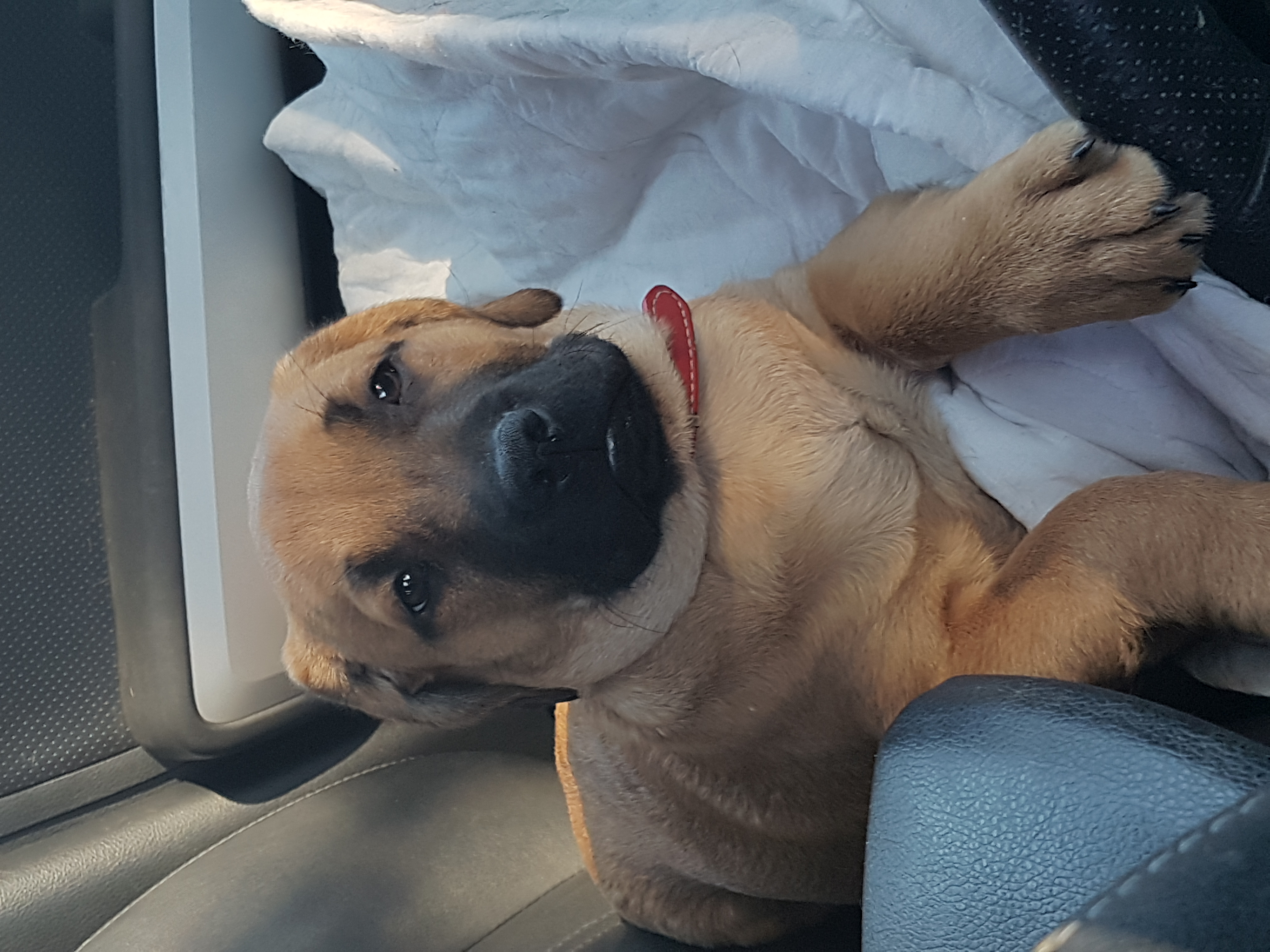 He is learning to sit and drop, he walks quite well on the lead and loves his walks. He is good inside and loves outside time as well.