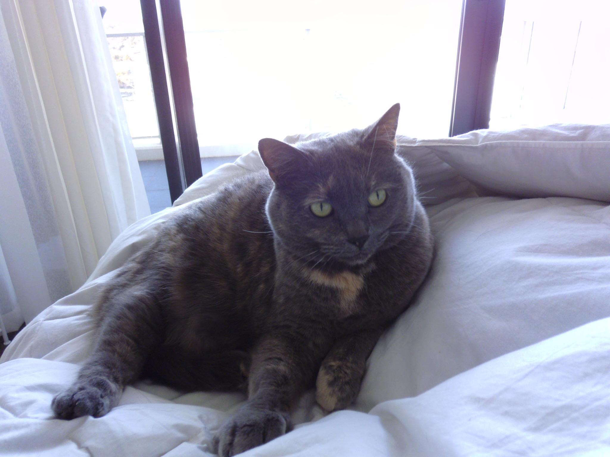 Sybil is a 7 year old de-sexed, microchipped female grey short hair cat with the most amazing green eyes, she loves nothing more than climbing up on your lap and going to sleep, and also come bedtime she loves to sleep on your bed with you.