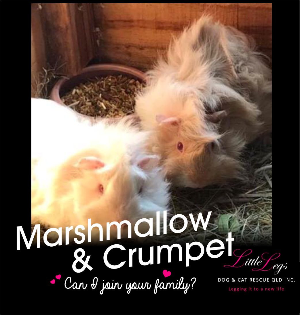 Crumpet is a lovely quiet and a bit shy Guinea pig. Crumpet lives with Marshmallow and the two of them get along very well. Crumpet takes a little while to get used to you, but is slowly coming out to the world. Crumpet enjoys all kinds of food but especially loved the leaves of celery stalks. Crumpet would really benefit from staying with Marshmallow.