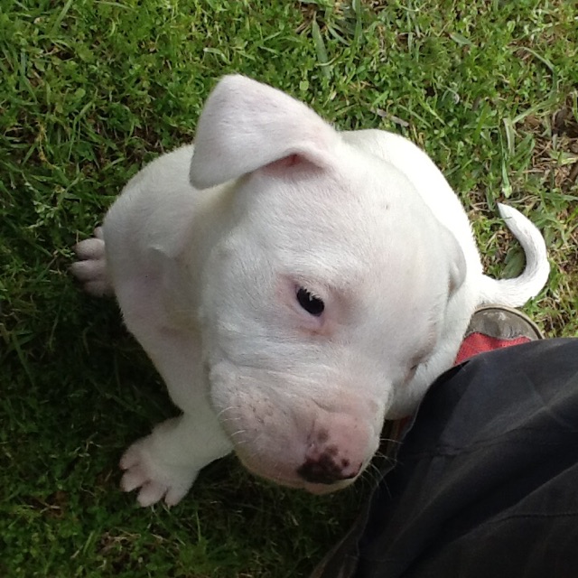They've loved me lots so now I'm in the market for another home where I will be treasured and loved as part of the family. I'm only 7 months old so I'm just a baby and I am looking for a family who has plenty of time and a strong desire to spend lots of time training me. I'm generally social with other dogs I meet though I often find them scary at first (even if they're a lot smaller than me). It's essential that you take me to some group training classes so that I can meet other dogs in a friendly and structured environment and learn how great they can be.
