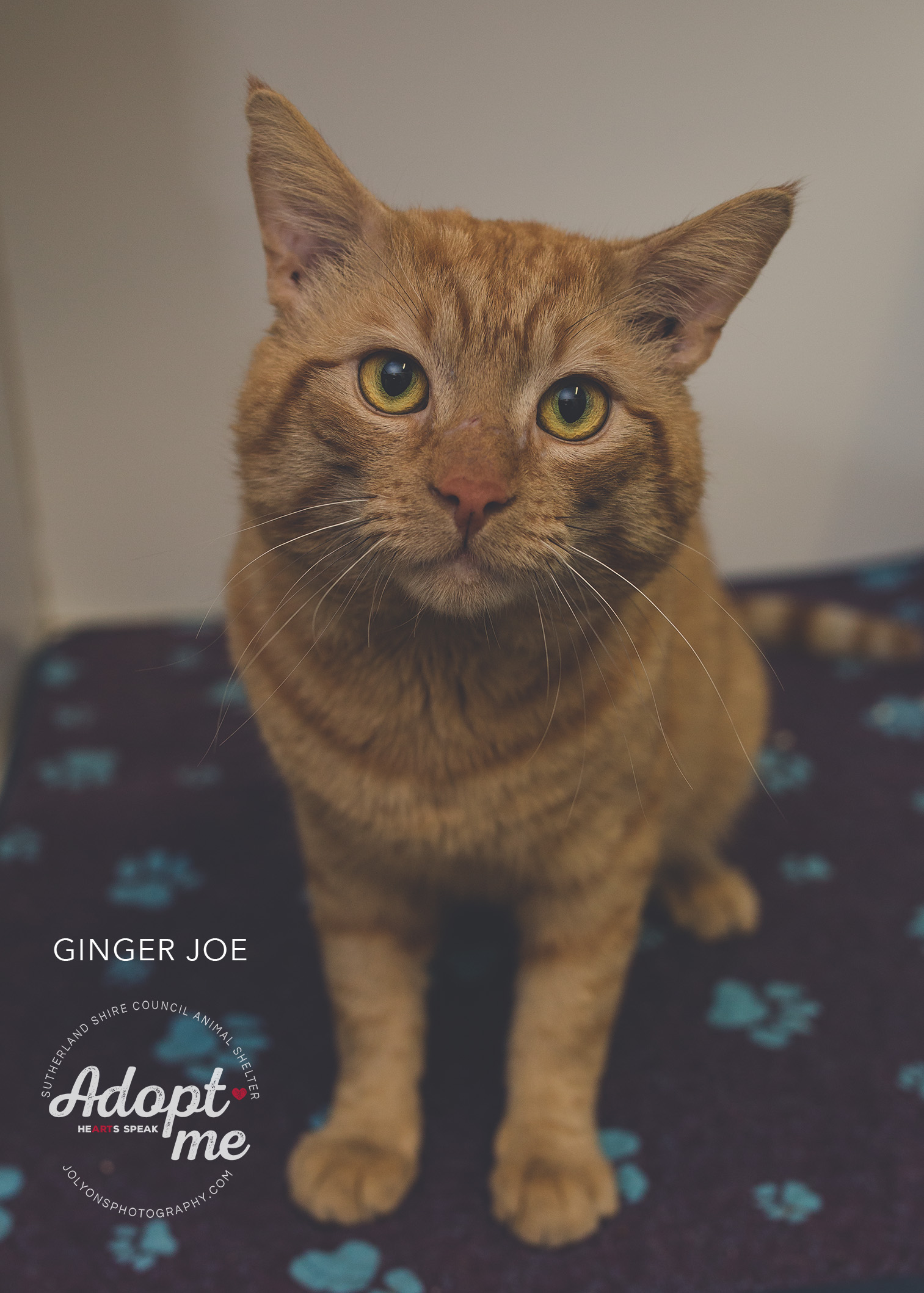 Handsome Mr. Ginger Joe – the whole package! This sweet man wants nothing more than your attention. He is bursting to get out of the shelter and into his new home where he can lap up you attention – and his next meal! Ginger Joe would be more comfortable as the only cat in the house, and who could blame him? More cuddles and attention for him! He’s a vocal little man that just wants to be included in whatever you are doing. Given his colouring and fair points, Ginger Joe would be better off ruling his home from the indoors, where he is safe and warm. Mr. Joe really is the purrfect companion, and is ready and waiting for you to come and visit him and sweep him off his paws!