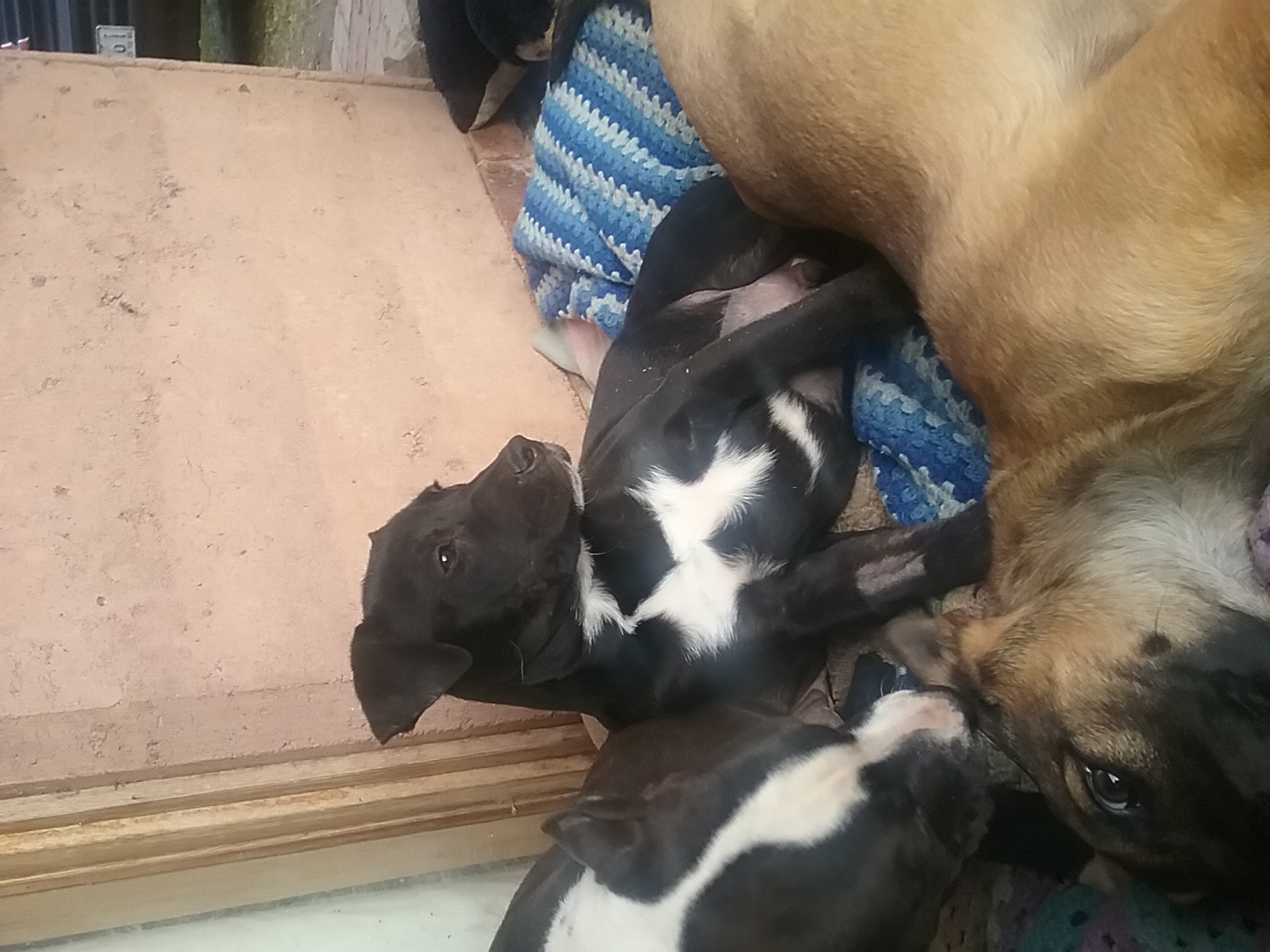 He has huge paws so has lots of growing to in the future. Has slotted in beautifully with dogs of all sizes and has become accustomed to sharing his bed and food with everyone including the cats.