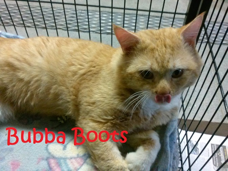 Bubba Boots is the most adorable sweet boy. He loves cuddles and head rubs. We think he may have part Munchkin in his breed as he has cute short legs!!