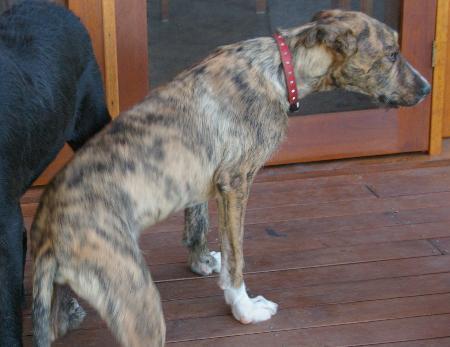 Praxis (max) is personality plus. He is a quiet and affectionate dog who loves human company. I quite often find him sleeping at my feet no matter where i am in the house. As he is still a puppy he is quite mouthy and has a playful side. Most of the day he is lazying about but for about 3 hours, he is playful and energetic. Max is very vocal, not in a barking manner more of a chesty noise when he wants something which can be very humourous. At the moment he is in 'one paw' at obedience class and he learnt to come when called and also is begining to sit and stay. He has been easy to train and he is eager to seek your approval and loves food! in my opinion he won't get much taller as his growth plates are filled out and he doesn't have any milk teeth left. I have been calling him max and he respondes to this very well. Max is great with children and my two god-daughters have had fun playing with him. Although when he gets excited he sometimes jumps but only needs to be prompted once to stop this behaviour. He living in a free range house that consists of another large dog, a flemish giant rabbit and our latest addition a ferret. He has got along with all animals only showing curiousity at the start. Each morning we go for a walk that includes an hour of off lead. Max has better recall during this time than my own dog. If you are interested in one of our dogs please complete an application form. Completed application forms are attended to before queries. Please view our procedures and download the application form at http://www. Victoriandogrescue. Org. Au/adopt. Html