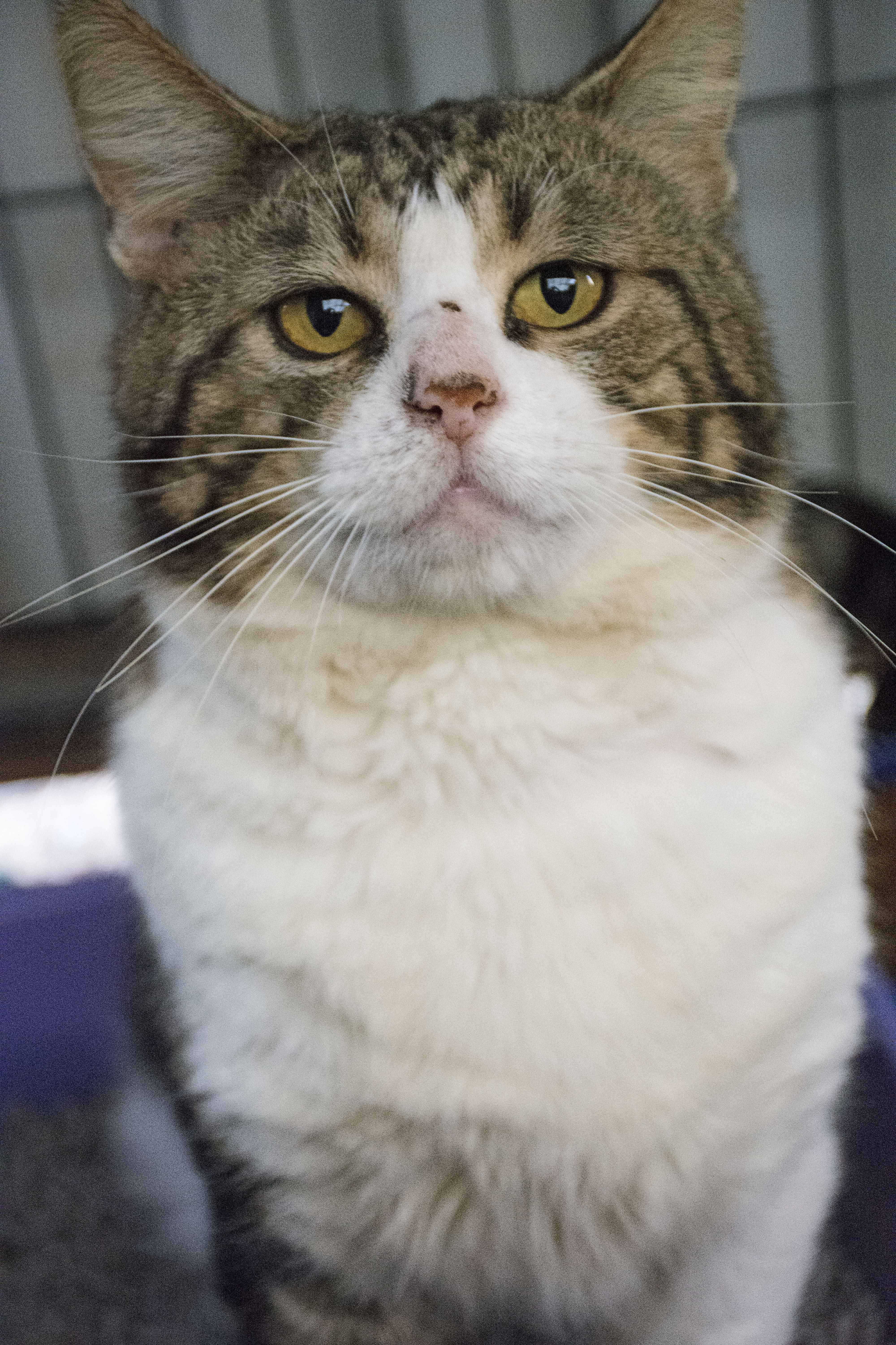 This big boy has lived the street life until a lovely couple brought him to us. He has a very beautiful nature and a sweet personality. He would like a home where he can roam from room to room and maybe a nice outdoor enclosure with BIG scratching poles and a nice place to sun bake