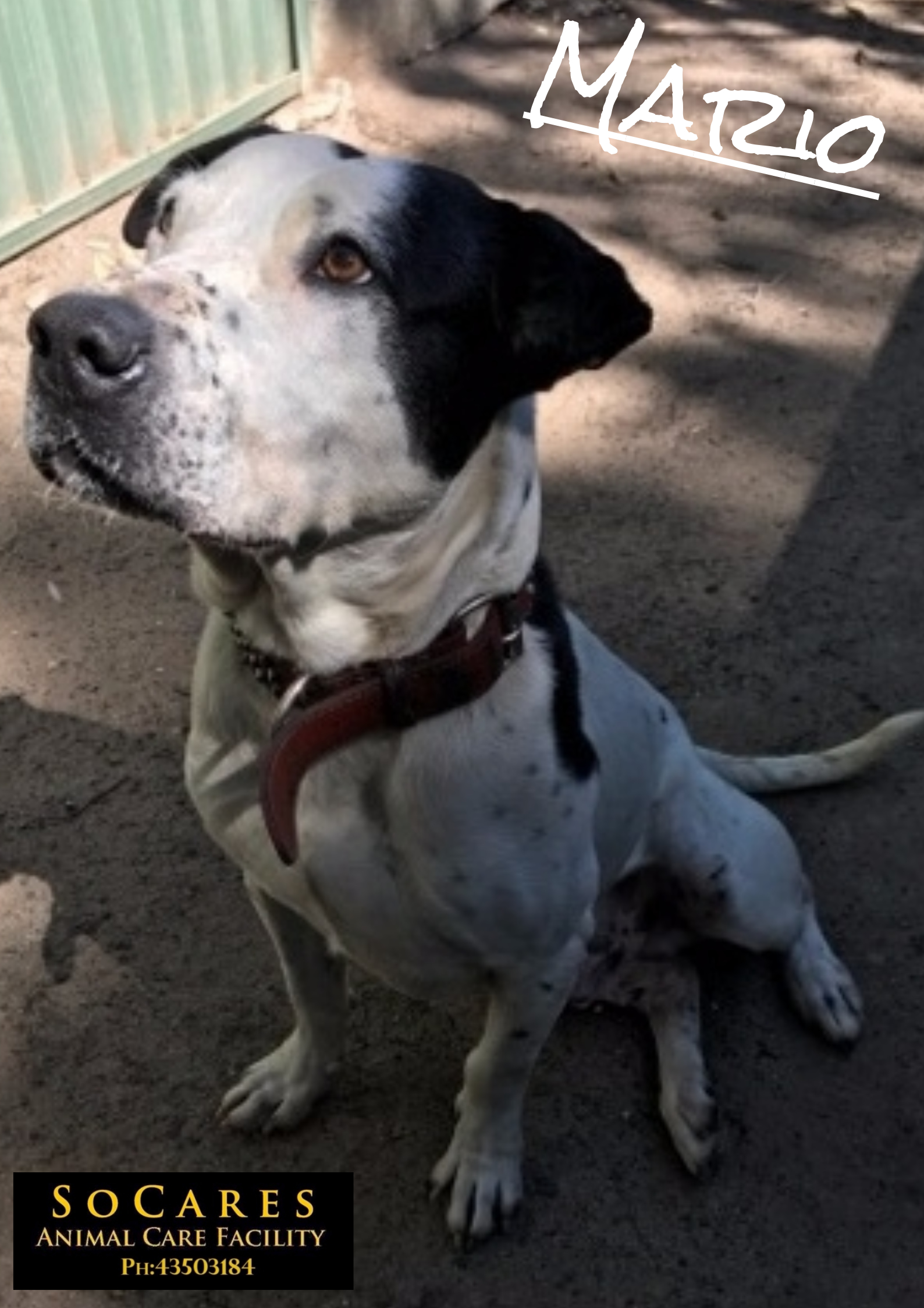 Mario was a loyal companion to his previous owner for 8 years. He come into our care in poor condition and needed lots of TLC. Mario is a sweet loyal boy who would make a wonderful additional for any family. He adores people, and his face lights up when he sees someone approaching his enclosure for a pat & a chat.