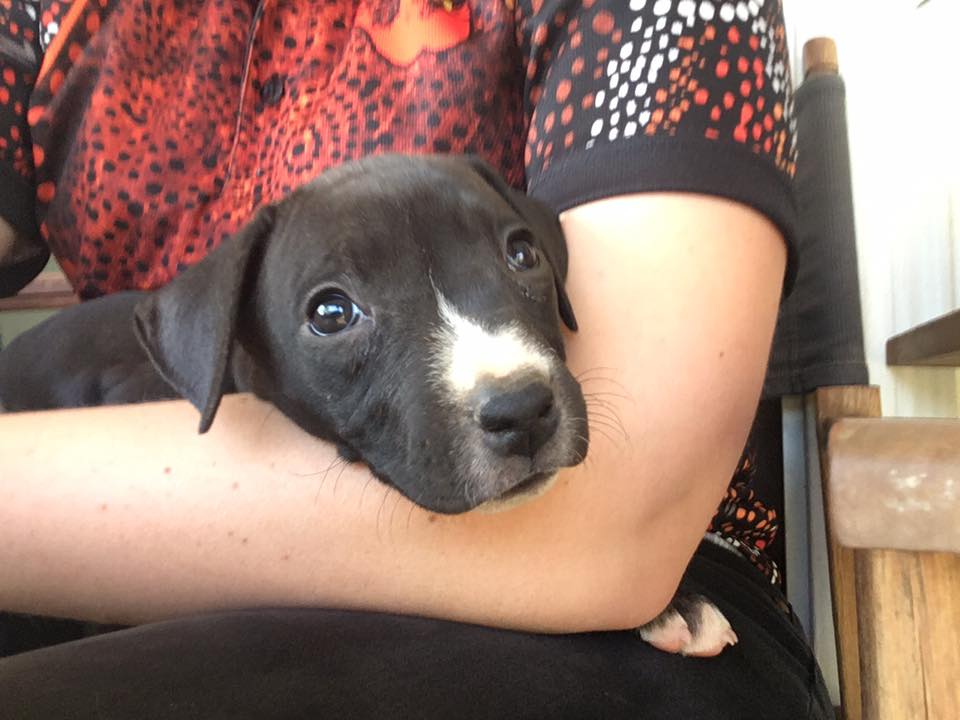 This little girl was just rescued from the pound. Estimated to be around six weeks old and possible staffy X.