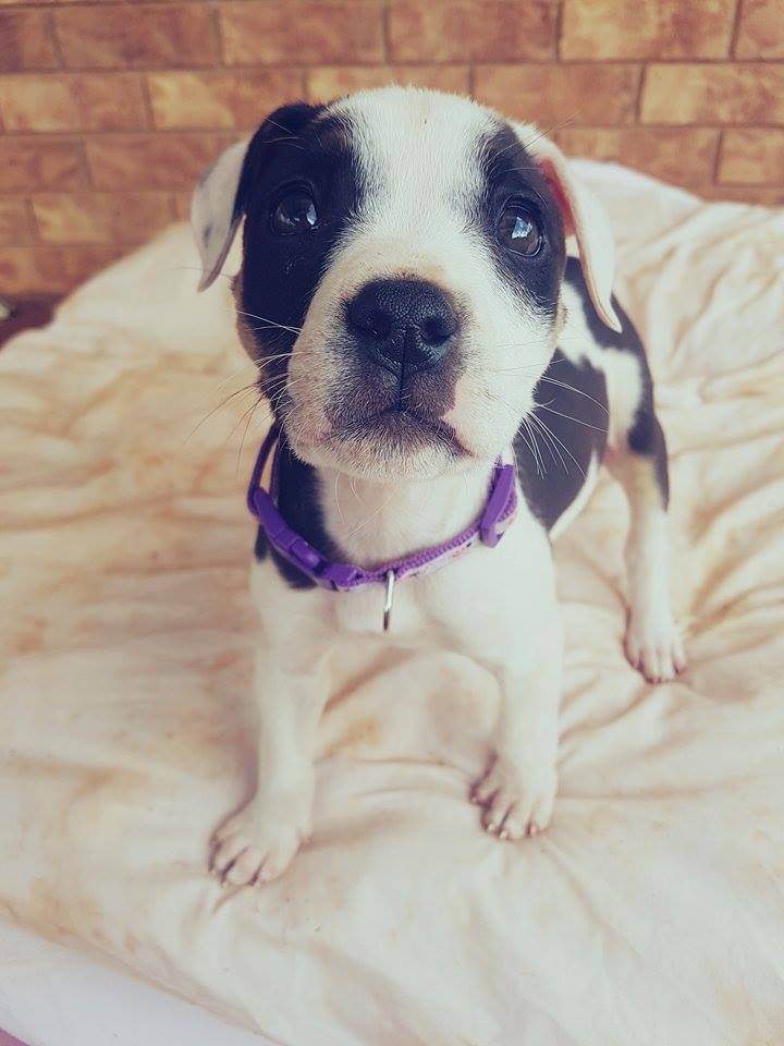 Located in Toowoomba Hi my name is Bubbles I am one of the Power Puff Girls. My sisters and I were found wandering the streets at just 6 weeks old! Our tummies were so bloated from worms and our bones were showing we were so emaciated. OTC quickly got to work and got our vet work done, gave us worm, tick and flea treatment and gave us a proper diet. We are all now ready for our new homes! I am a staffy cross. We aren't too sure what the 'cross' is but believe it may be mastiff.