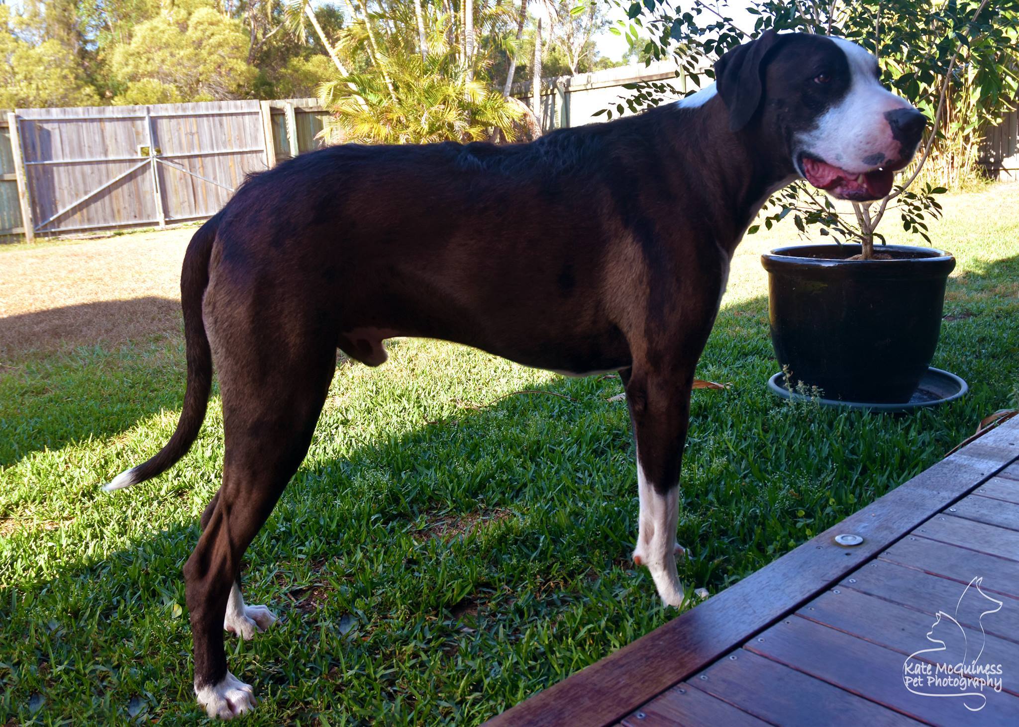 His favorite toy is 'Ellie' his stuffed elephant and loves nothing more than to act out his inner 'lap dog'. He would suite a family with experience with large breeds and can dedicate the time towards further temperament training and time spent giving him all the love and attention he craves.