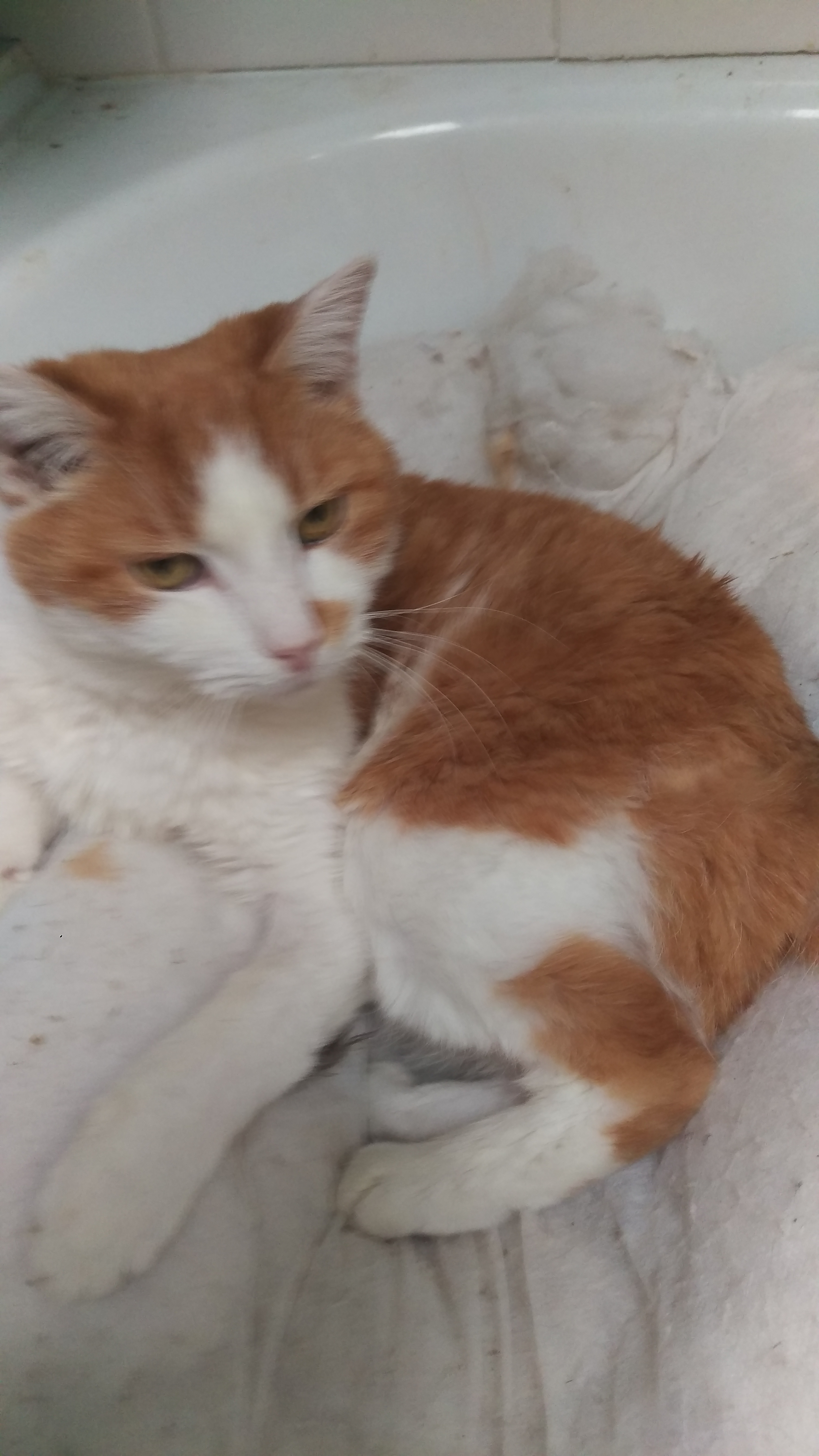 Full of character Miss Kitty likes your company and is very affectionate. She likes to boss the other cats around. 14 years young.