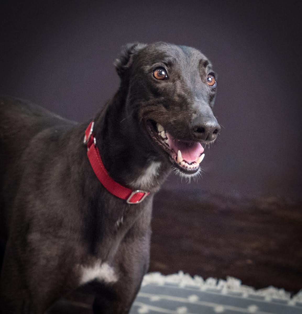 Wally is an adorable 2 and a half years young. Rarely have we seen such a happy and expressive boy. He just loves life and loves to be there with you, whatever you are doing. Wally absolutely adores spending time with his people. He will seriously melt anyone’s heart. You have not been properly kissed, until you have had one of Wally’s big sloppy greyhound kisses! Wally is such a happy boy and just loves everyone and every dog!