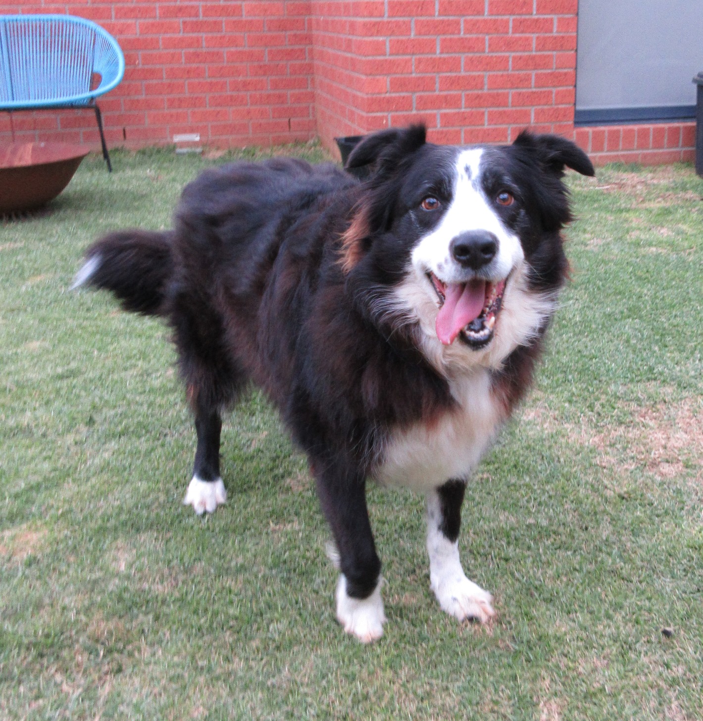 The boys hadn’t spent much time on a lead in their previous life but now they’re in foster care they’re being walked almost daily using Gentle Leaders as they’re quite strong especially if Rocky sees another dog and gets excited wanting to say ‘hi’! Speaking of other dogs they’re fairly good around them considering they’ve had very little socialisation in their past – they especially like their foster carers own two Cavoodles who Scout likes to chase about the yard; it must be a Border Collie try to round ‘em up kinda thing!