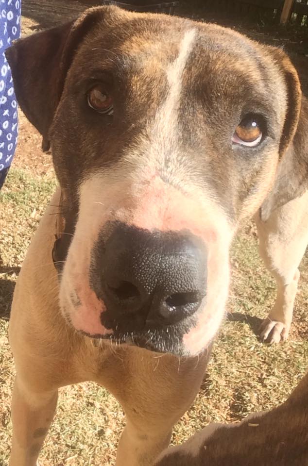 You would never know I suffered at the hands of evil people. I am the most sweet, gentle and enthusiastic dog you've ever seen. I get along amazingly with all dogs and humans, even cats! I still scoff my food, but that's no big deal! A simple maze ball, or Kong etc is all that's needed to keep me pacing myself. I haven't shown any signs of destructive or undesirable behaviour and I love toys. My carer said the only thing is that if you leave a hot chicken on the bench, well of course that's very tempting for me- so my new family will have to learn to 'dog-proof' their kitchen. I love car trips and playing with balls, and am happy to sleep inside, or out- but I love being allowed inside to be a part of the family. I love to go for walks and as you can see in some photos I use a 'halty'. It just makes it easier to walk a big guy like me now that I am getting my strength back.