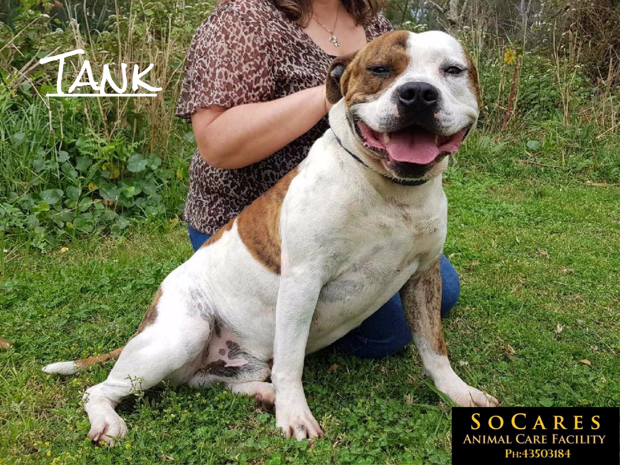 Tank has a handsome patch over his eye which makes him even more adorable. He has a happy, friendly nature and he loves belly rubs. Tank is great to walk on the lead, however he will need a strong handler and he would benefit from some further training. Tank would make an awesome companion because he thrives on human interaction. Tank appears to be dog friendly.