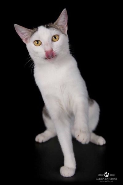 Best Trait: She is super smart and has learned how to high-five. She's a sweet and gentle girl. She is timid at first but has really come out of her shell and is even good around larger dogs! She loves to play chase and have a cuddle. She would need to be in a house with not too many other cats and have her own space.