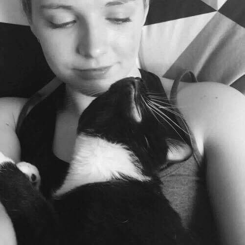Nyssa loves to cuddle as you can see, but is skittish to big movements, changes of her environment and dislikes large open spaces. Despite this and being shy at first, amazingly she is still willing to trust and will warm up to her humans.