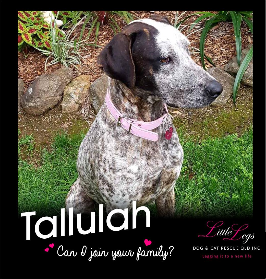 After arriving in foster care four weeks ago Tallulah or Lulah as she is affectionately known, has achieved so much for such a young dog that didnt have a great start in life. She already responds well to her name, knows to sit, comes on cue and waits so patiently for her food. She is now gaining the weight she needs.