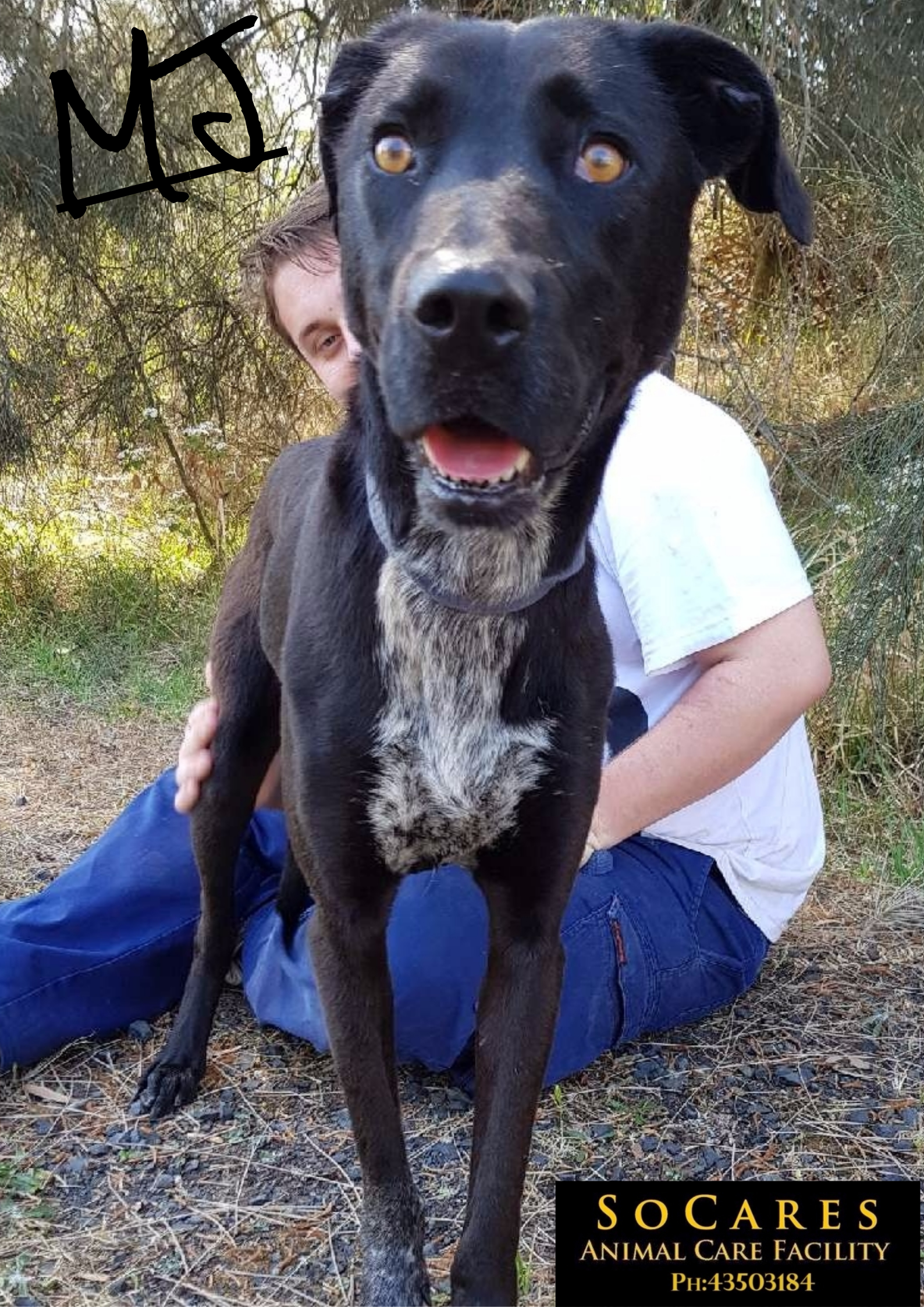 MJ is a super, friendly young lady and she has the most stunning eyes. She has a happy personality and she loves meeting new people. MJ likes to be kept active by going on long walks or runs. She loves water and rolling around in mud puddles if she is given the chance. She is great on the lead and at her happiest being out and about with you. MJ also loves nothing more than to sit on the ground with you and have a cuddle. She is dog friendly and she will make an awesome family addition.