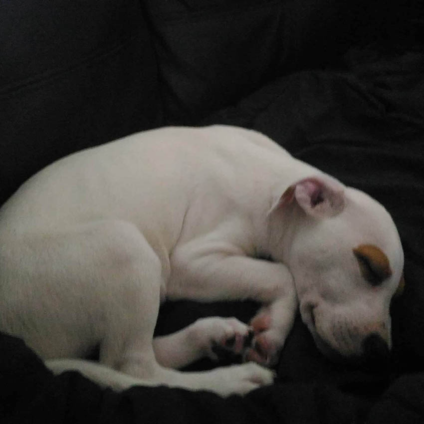 Introducing Jessie! a 10 week old, female Wolfhound x Staffy puppy who is extremely affectionate and so sweet. Jessie and her brother love cuddling up and getting kisses on their heads and they love playing together. Jessie is white with gorgeous brown patches around her eyes.