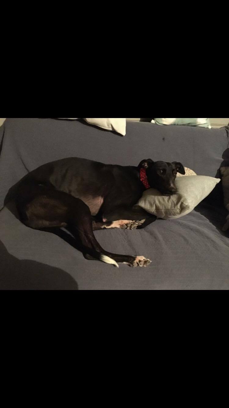Ellie is a great all-round dog who’s chilled out most of the time, but also up for a walk or a play with her toys whenever you are. She loves being indoors being a pampered pooch (although still learning good household manners), and loves being close to her humans and showering them with affection. She adores a good cuddle, or curling up with you on the bed or the couch. She’d be great in a family with children (six or over), who can spend plenty of time soaking up her love. Ellie would be ok as an only dog with plenty of human company, or with another similarly-sized dog. She has a keen prey drive so isn’t suitable for a home with small dogs or cats.