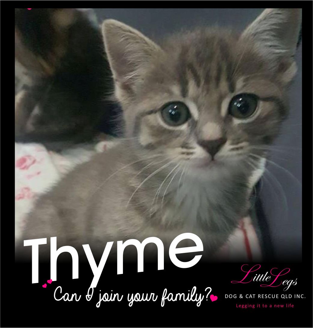 Thyme is the best little kitten, he is very active always playing unless he is sleeping. He is always the first to come for pats/cuddles.