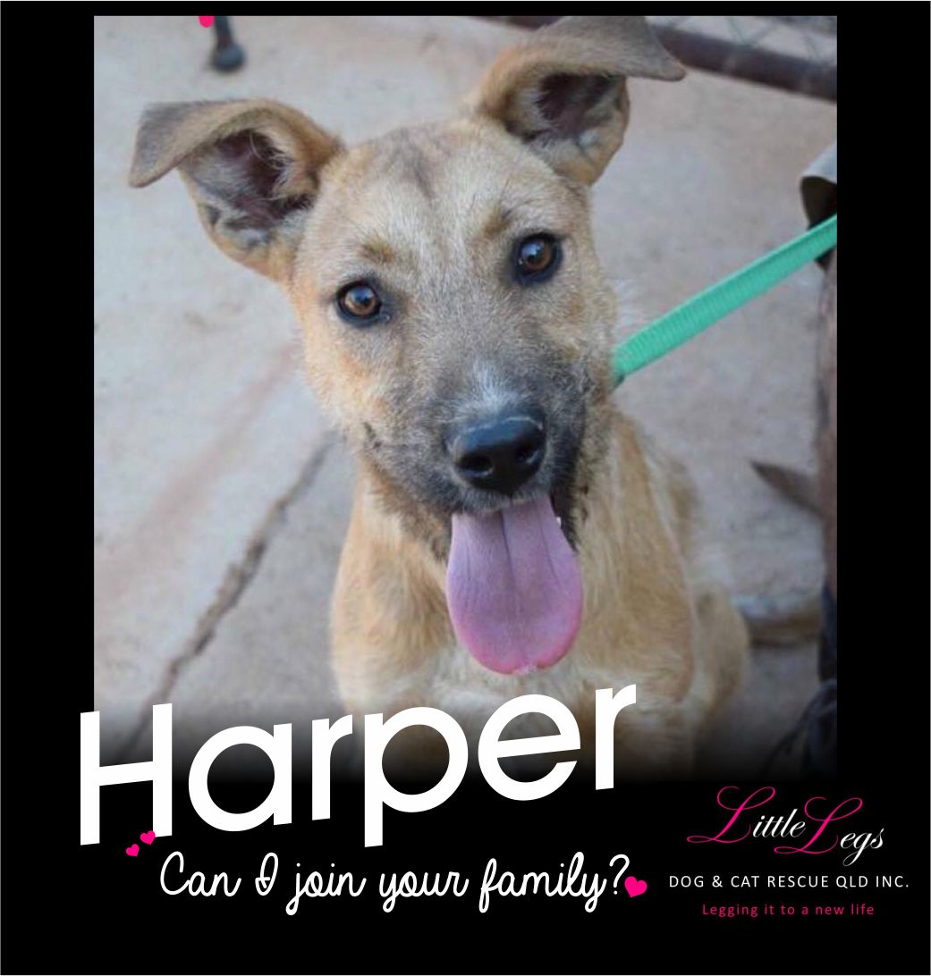 Harper is a very good family dog, she is eager to please, very calm and gentle. Harper can be a bit anxious but always ready for a pat and a cuddle. Harper would be easy to train and needs a few more walks and training for potty to excel in these areas, but as she is very accommodating this will not take long. When you leave to go out she patiently awaits your return. Harper likes other dogs and is fine with cats so far (only limited exposure at this stage), but as long she has her 'family' whether it is just people or animals and people she is happy just being a part of it.