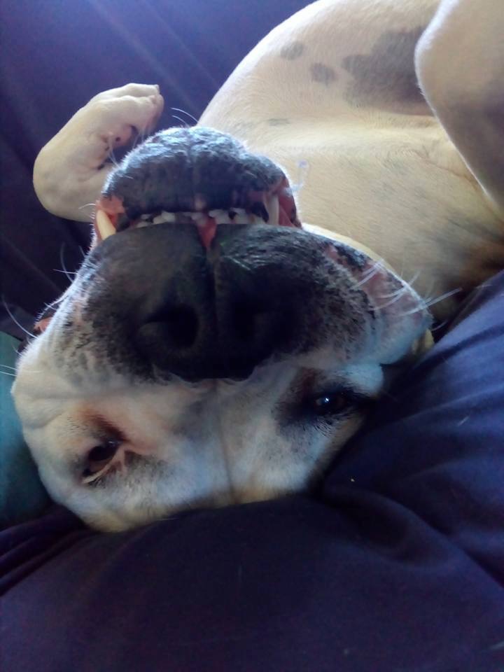 Nelson is a 4 year old, male, American Bulldog who is de-sexed. He comes from a family with children and another dog and has been around cats. He loves cuddles, pats and lazing about and is happy to let you know when he wants to be left alone. He will sit, drop and stay for food. Actually, he will do most things for food :) He also loves water - the hose and swimming!