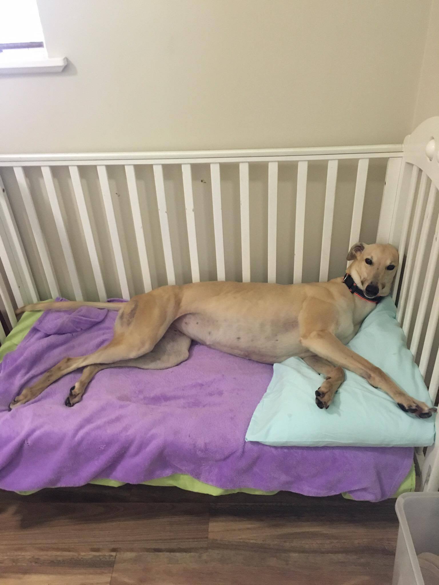 Pretty little Alice has come to us with her sister looking for a home after being retired from racing for a couple of years. Alice was born in 08/02/12. Although kenneled at a racing facility most of her life, Alice has adapted beautifully into companion dog life and is also learning to co-habitate with a couple of cats. Alice is wonderful with kids and adores their company. She happily sleeps most of the day while her foster carers work and isn't dependent on having another dog around. She likes her little walks around the neighborhood seeing the sights however, she is a typical, delightful greyhound couch potato most of the time. Her vet work is done and includes desexing, microchip, vaccinations, flea and worm treatment.