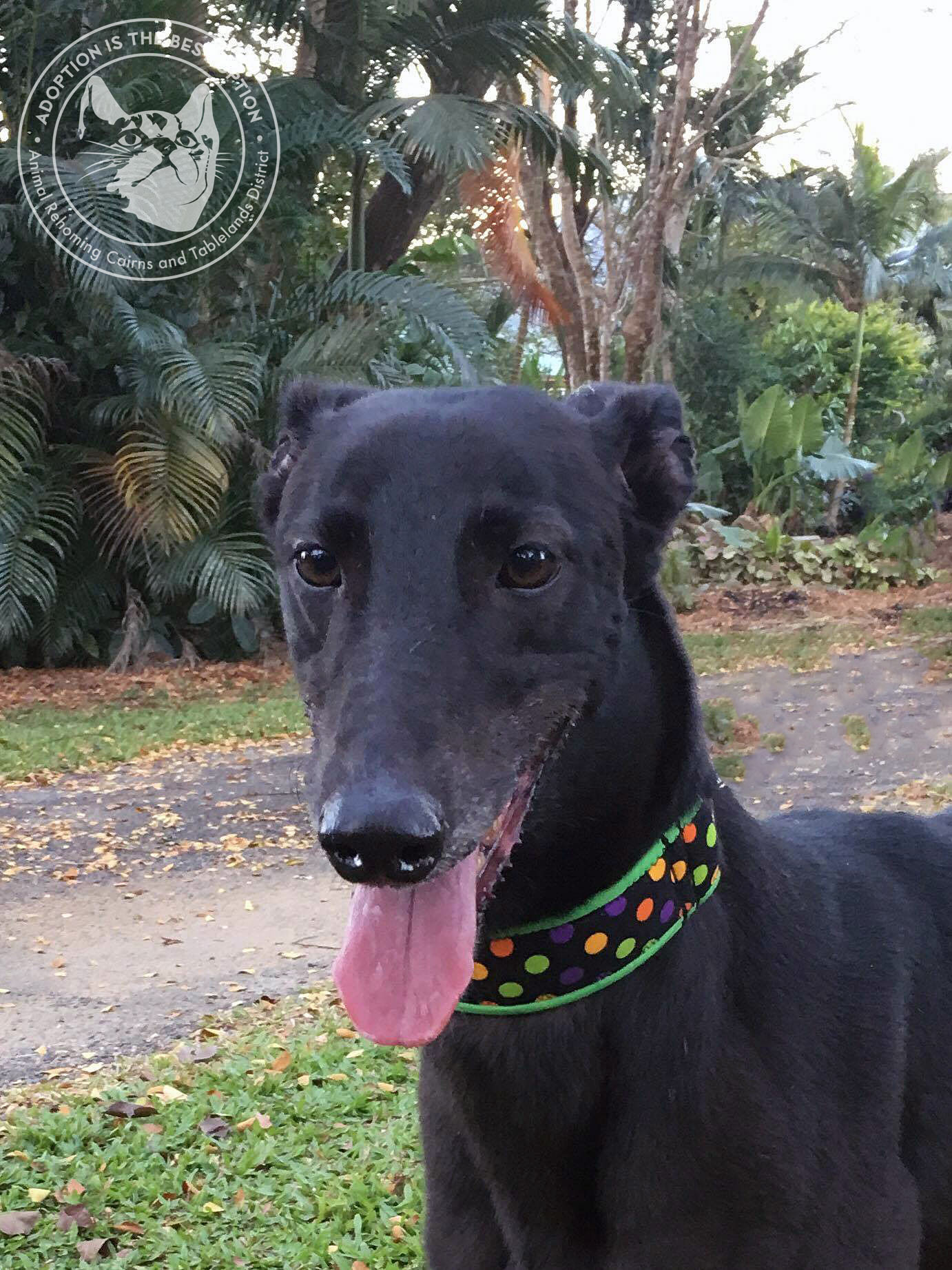 Meet Nimbles (race name Eunice Lillian) a 5 year old female greyhound looking for the easy life of a lounge lizard. Born into the racing industry on 08/02/12 , Nimbles did quite well as a race dog but was retired about 18 months ago and thankfully spared from the same fate of many others by her kind trainer who couldn't see that happen to her. Nimbles has adjusted to pet life with ease and is the perfect little house dog. Nimbles probably misses her sister Alice with whom she had always lived but she shows no signs of separation anxiety when left on her own and will wait patiently for her foster carers arrival home from work each day. Nimbles adores her teenage foster family and going out for short walks with them . She is a hoarder of sorts (a typical greyhound trait) and likes to collect her toys and keep them safely tucked away in her bed, then bring them out later to show you . Nimbles is jet black and very pretty . She is very low maintenance but definitely an inside / outside girl who will happily lay close to her humans most of the time. This one isn't trained to be cat tolerant so a home without them would be ideal. With plenty of local support from the growing greyhound companion family why not consider a wonderful greyhound addition. You will be pleasantly surprised. Her vet work is done and includes desexing, microchip, vaccinations, flea and worm treatment.