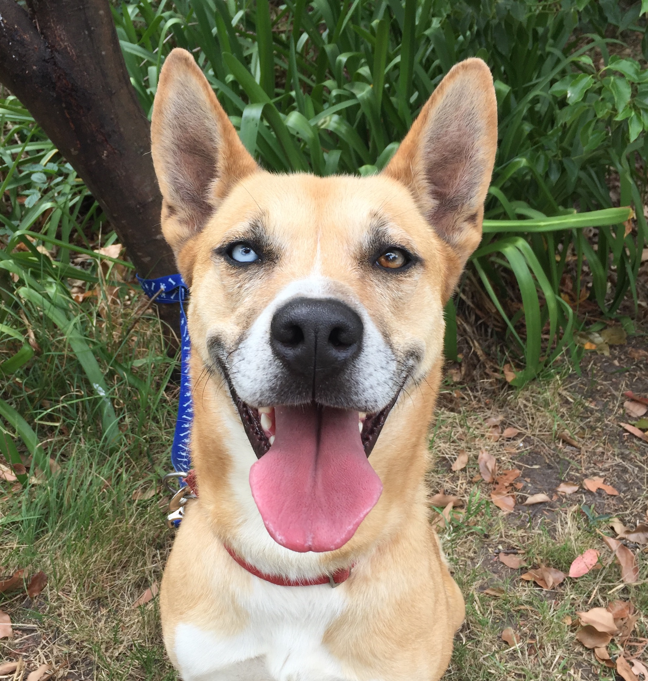 Hi I'm Rufus and I'm an affectionate, friendly 4 year old Husky x with a whole lot of character. I'm an exceptionally good looking chap (if I say so myself) with a soft honey coloured coat and an energetic personality. I have striking eyes - one eye is a cool blue and the other is green and light blue. I'm a tall boy with long legs and a constantly wagging tail.
