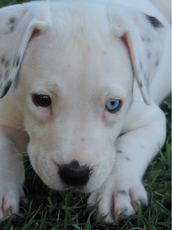 Aviva is a very friendly, inquisitive pup. She really enjoys the company of other dogs and loves kids will follow them around anywhere. Aviva is very confident despite being deaf and is quite observant which helps when training, clapping hands and tapping motions signals for her to come and she responds well. Enjoys playing with toys and like any pup likes to chew so chew toys are a must. She easily adjusts to new situations but can be a little shy at first.